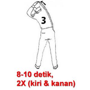 - 3of12) Dari No. 2 tadi lipat tangan hingga ke siku & miringkan badan ke kiri & ke kanan. dengan gerakan No. 3 diharapkan otot bagian pinggang atas (kanan & kiri) menjadi lebih rileks.