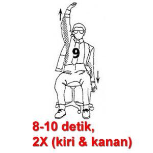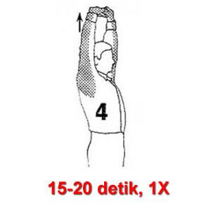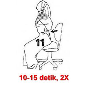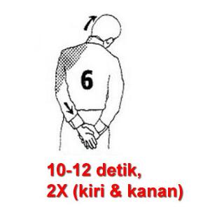 - 2of12) mirip dgn gerakan No. 1 tetapi arahnya ke atas, tahan selama 10-20 detik, 2 putaran. Efek dari gerakan No. 2 adalah merenggangkan otot di sekitar pundak & leher.
