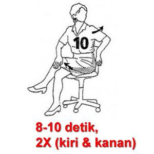 - 10of12) Lipatkan kaki dan gerakkan badan secara berlawanan dgn arah gerakan pinggang (sambil duduk). gerakan ini akan membuat efek rileks di sekitar pinggul dan otot" punggung bagian bawah.